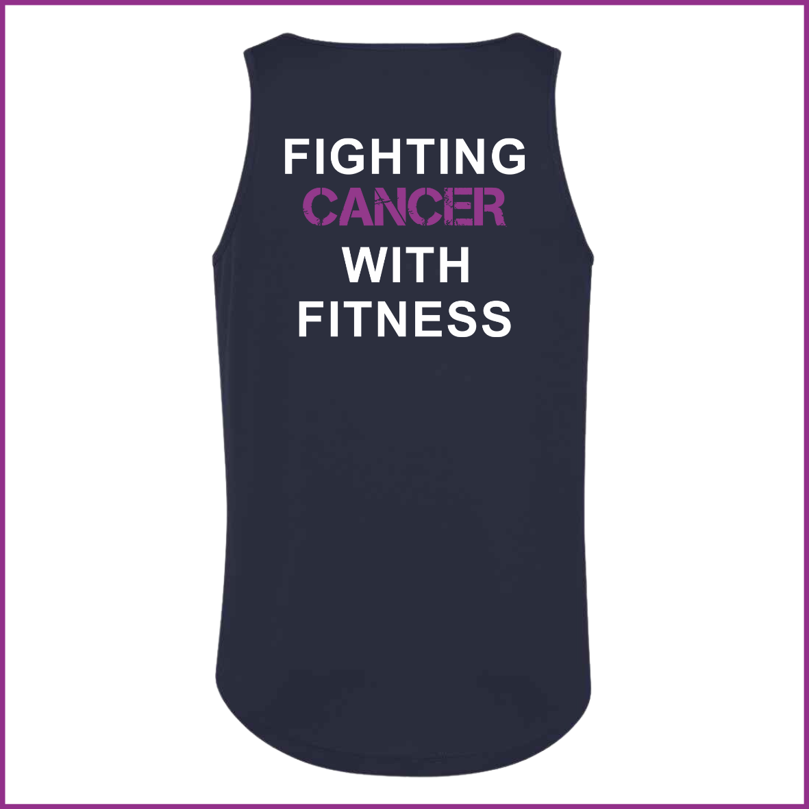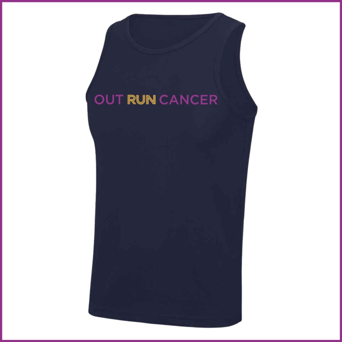 Printed OUTRUNCANCER on chest & printed fighting cancer with fitness on the back.