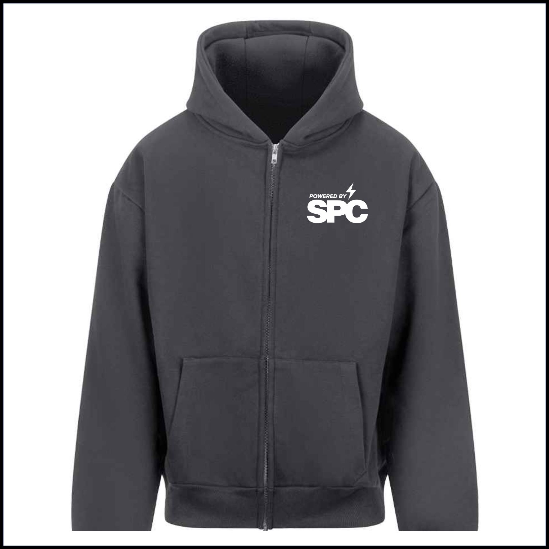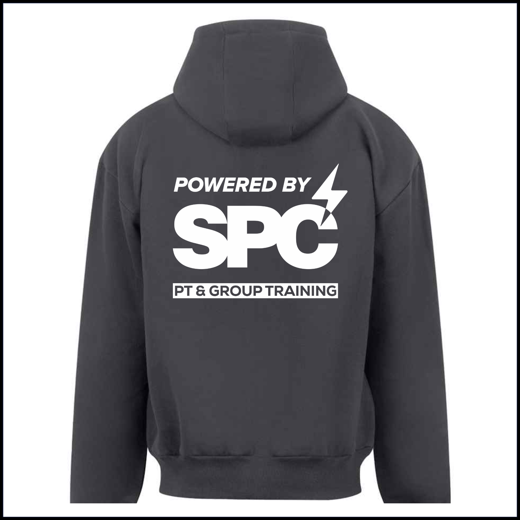 Complete with printed Lightning Bolt SPC left breast logo & large printed Powered by SPC logo on back (white print)
